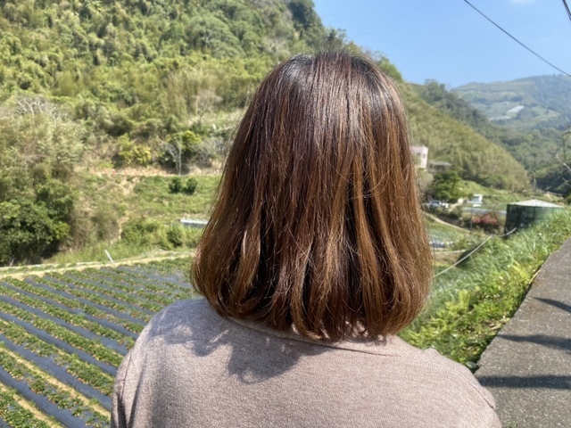 太陽光照下來,我發現髮色維持得不錯,髮絲也很柔很順呢!