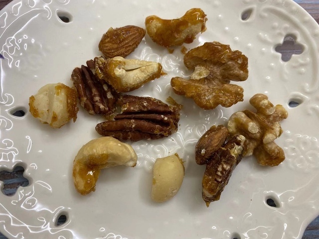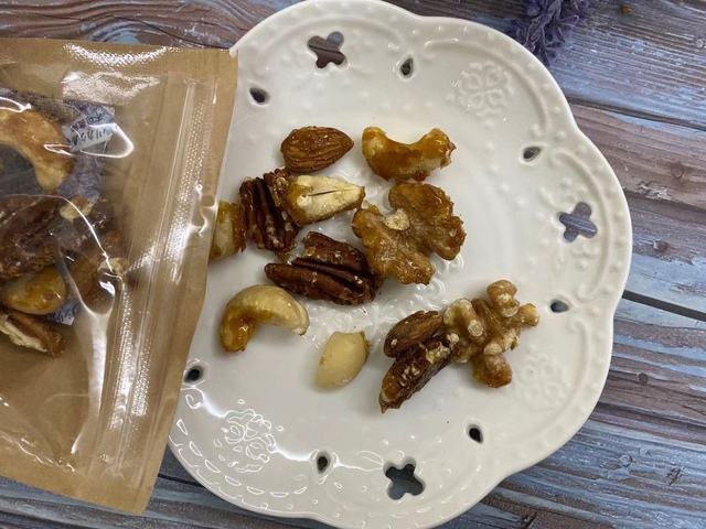 堅果果仁表層裹上一層琥珀色糖衣,散發香甜濃郁、甜而不膩的焦糖香