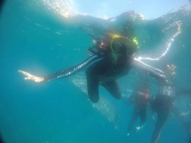 看到龐大的鯨鯊在水裡優游~完全沒有懼怕的感覺,只想再靠得更近一些合拍