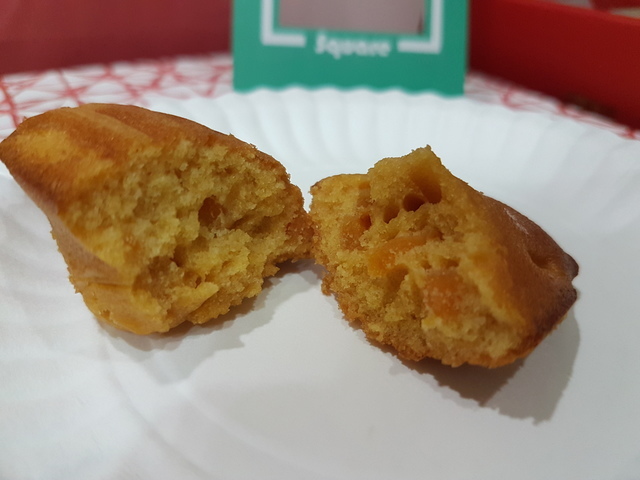 焦糖杏桃口味的瑪德蓮,蛋糕內餡裡有滿滿的杏桃乾粒,讓口感層次更多樣化,綿密扎實的蛋糕搭配杏桃乾微酸甜的口感,毫無違和感,太療鬱啦!