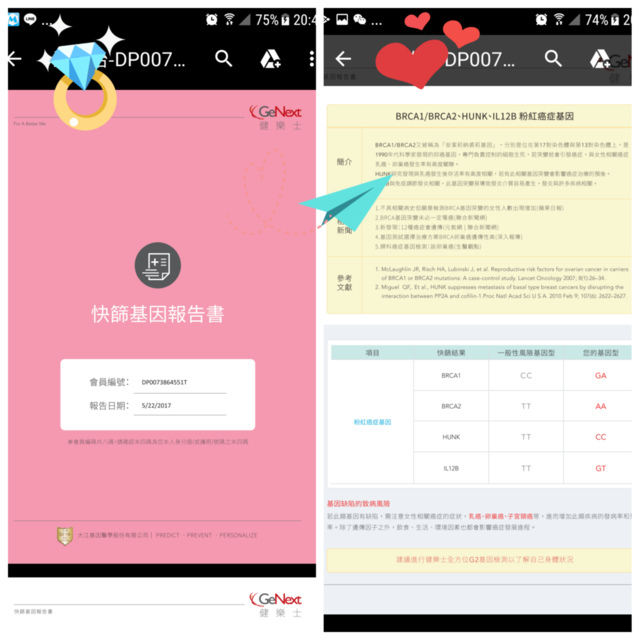 跟大家分享我這次的基因檢測報告,我的基因非正常型基因而是有風險的
