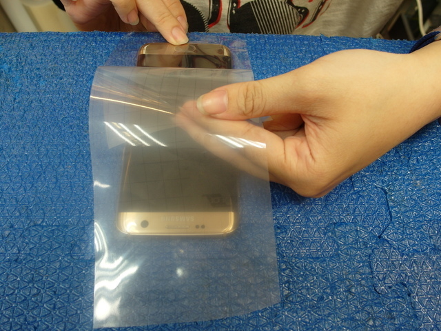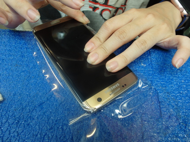 曲面的S7 Edge貼上玻璃保護貼後最擔心的就是觸控的問題,以前貼過好幾次,在四週處容易產生觸控不良的情形,往往最後面臨的就是砍掉重練,花了不少學費在上面。