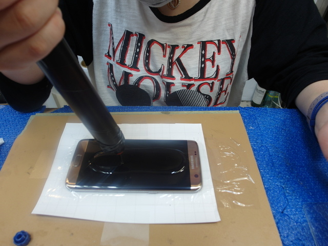 包膜師說光學膠照UV光使光學膠凝固後,接下來的除膠才是真正考驗細心度的時候