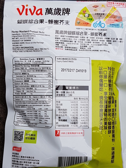 萬歲牌這個月份剛上市的萬歲牌蝴蝶綜合果-蜂蜜芥末,每包容量有