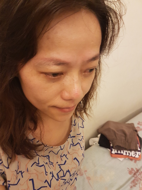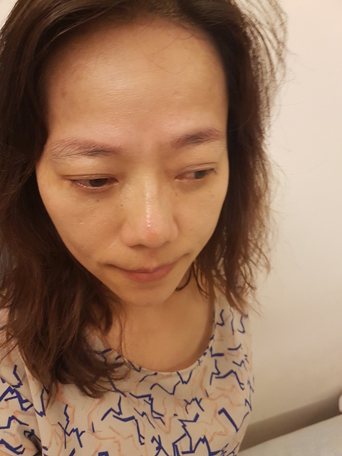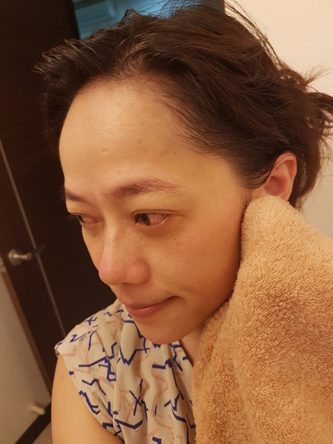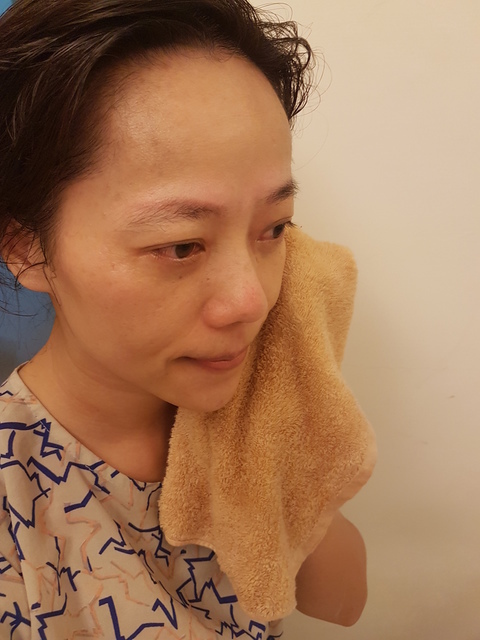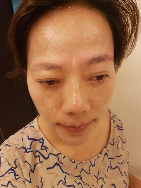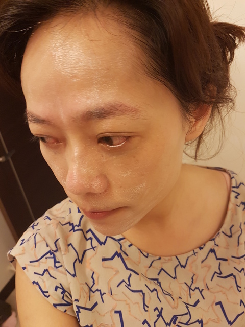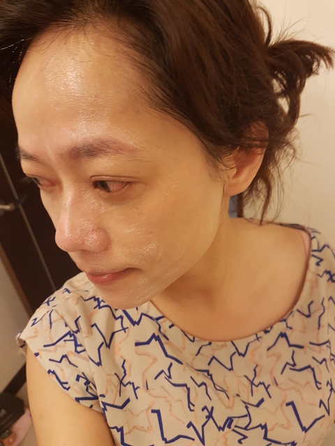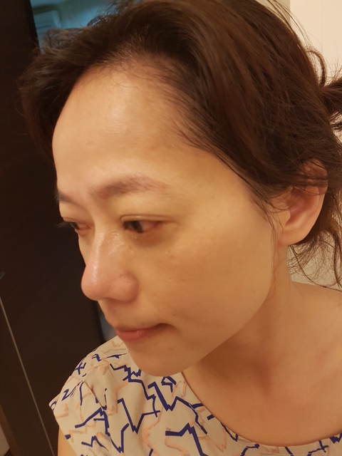 這是我經過了一天之後的淡妝,臉部已經很明顯的呈現出油膩的狀態,妝也顯得有ㄧ些糊掉了。
