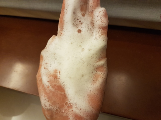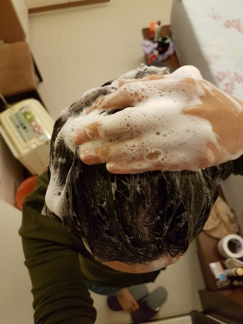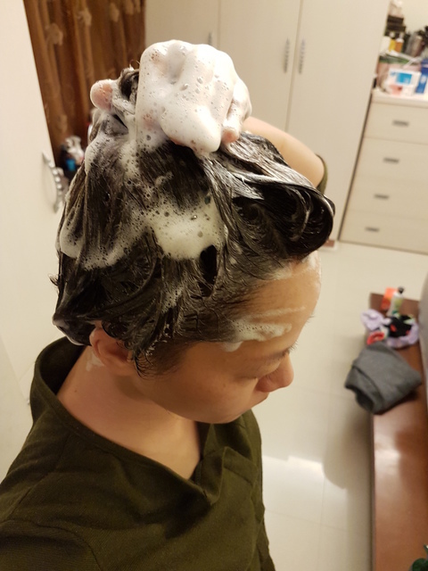 第一遍清洗頭皮處時,搓揉起泡後清洗髮根;清洗第二遍時則取出稍為多一些的量,均勻的按摩頭皮以及搓揉髮絲,泡沫綿密細緻,將頭皮的油脂以及髮絲間的髒汙洗淨。