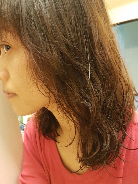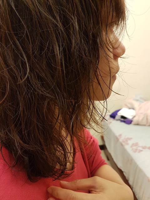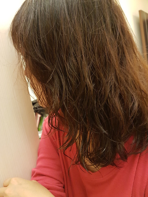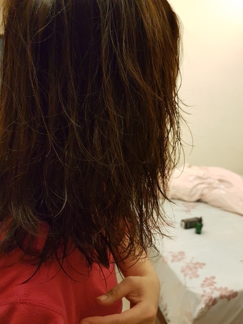 將泡沫沖洗乾淨後,髮質有一點點的乾澀感,將頭髮吹到半乾或是全乾後~使用髮尾修護精華油來滋養法根