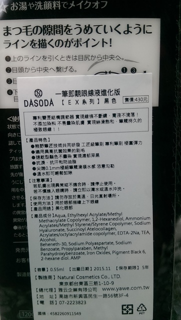 DASODA EX 液體眼線筆強調這是一款可以用「溫水卸除卸除的眼線液