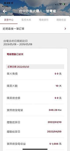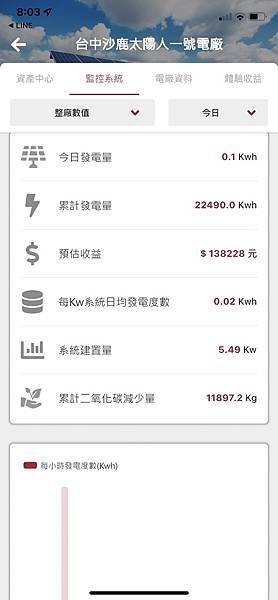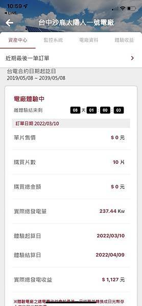 在體驗的期間,進入會員中心的監控系統觀看發電與收益數據