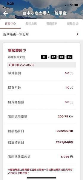 【太陽人全民電廠】體驗期間的收益將轉為日光幣做為正式認購時折抵