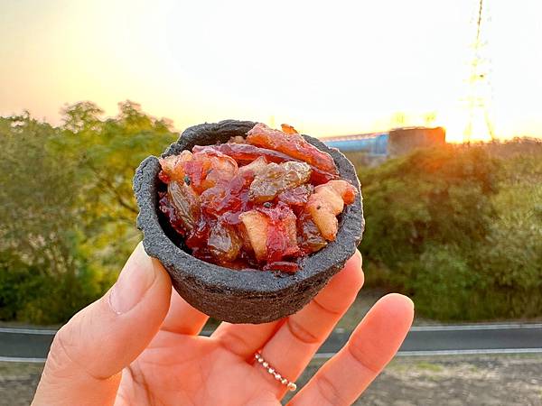 竹炭黑梅塔使用了洛神花、蘋果、鳳梨、青提子、草莓醬