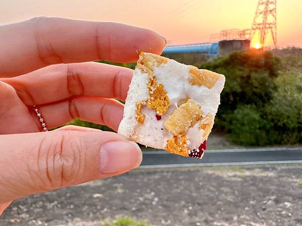 有春牛軋糖以鳯梨、芒果、火龍果乾製作而成