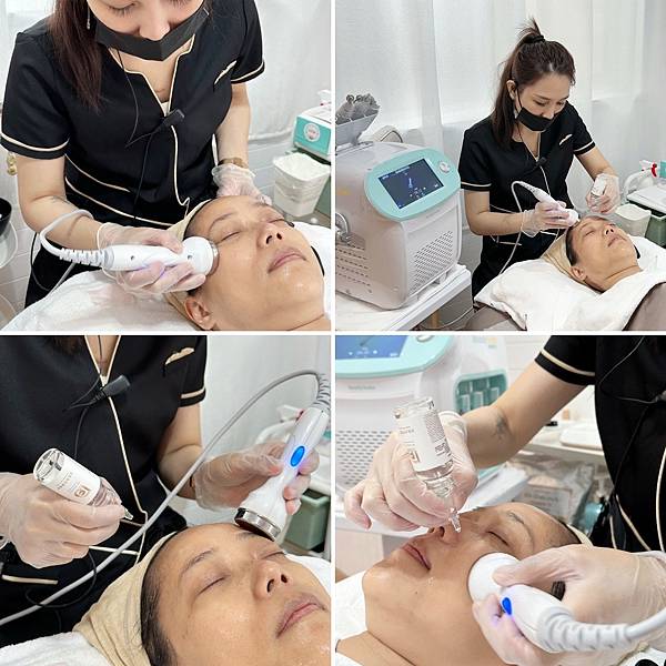 透過導入儀讓『多肽水炸彈精華』快速滲入肌膚