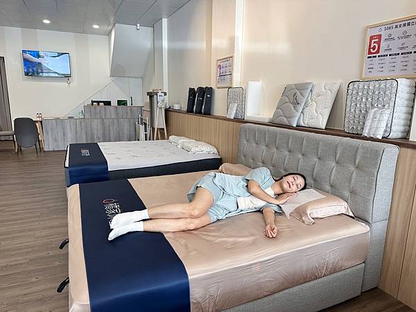 專業又親切的服務人員,建議我先試躺獨立筒床墊,接著再試躺乳膠床墊