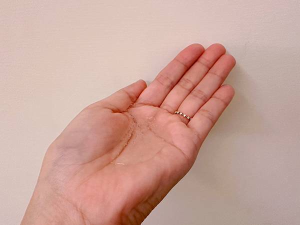 取出適量於掌心上,平衡髮浴所呈現的質地略帶濃稠