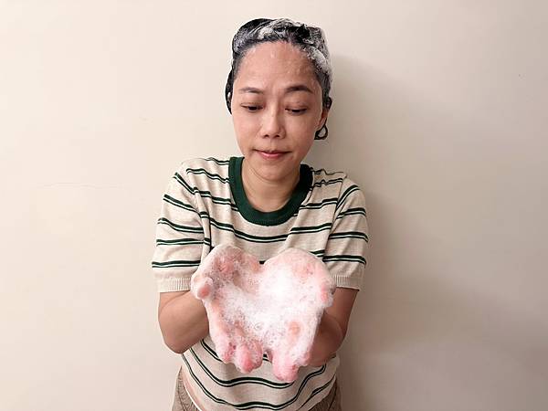 【蓓詩垛深層控油平衡髮浴】起泡力很不錯,輕輕搓揉就能產生綿密的泡沫