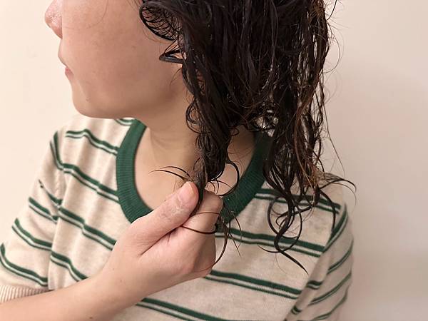 抹上後靜置個3-5分鐘,沖掉後髮尾滑順到用手都梳得開,吹乾後整體髮感柔順不毛燥