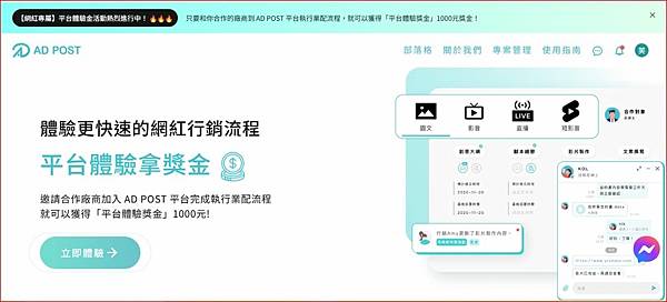 更棒的是,AD POST 現正推出「平台體驗獎金」活動!