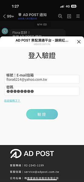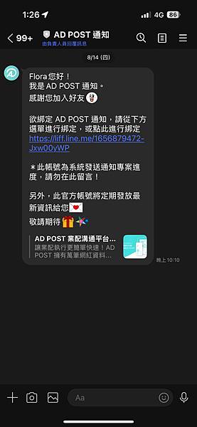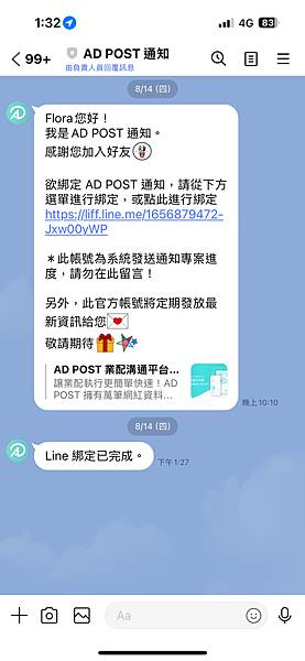 AD POST 平台還有一個很貼心的功能,綁定line這個功能我真心建議要使用