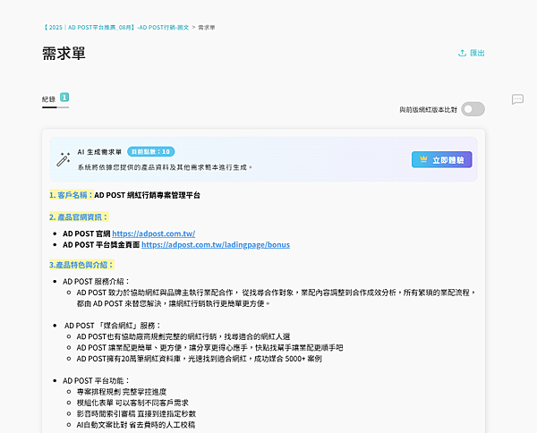 AD POST 平台的前版比對的功能很厲害,讓您一眼就能看出對方所有調整的文字