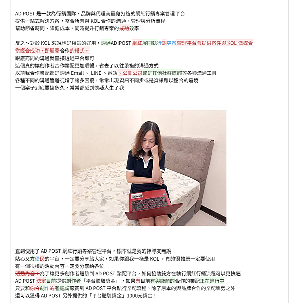 在尚未使用AD POST 之前,我在業配來回往返跟廠商溝通花了好多時間