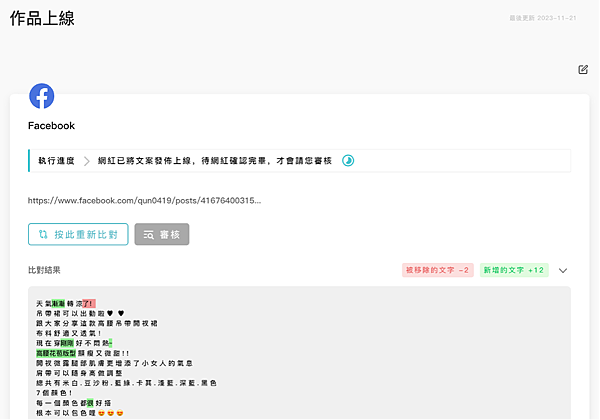 在 AD POST 平台貼上上線連結,AI 能快速比對與當初定稿的文案是不是不同